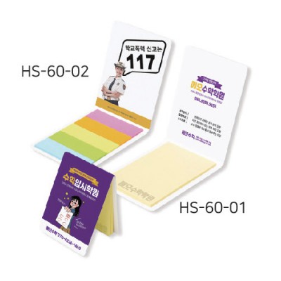 | 기타사항 | •표지 60 x 80mm (HS-60-02) •15x50mm (형광오색지) •20매 •표지 컬러인쇄, 내지 먹1도 •기본수량 1,000개 |