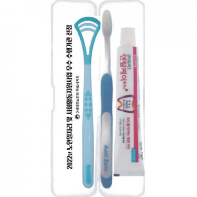 | 기타사항 | (종이케이스별도 100원) •Size : 200×45×30㎜ •안티프라그치약50g,신형안티제로칫솔,실리콘혀크리너 ※구성품 교체 가능 / 칼라인쇄시 100원추가 |
